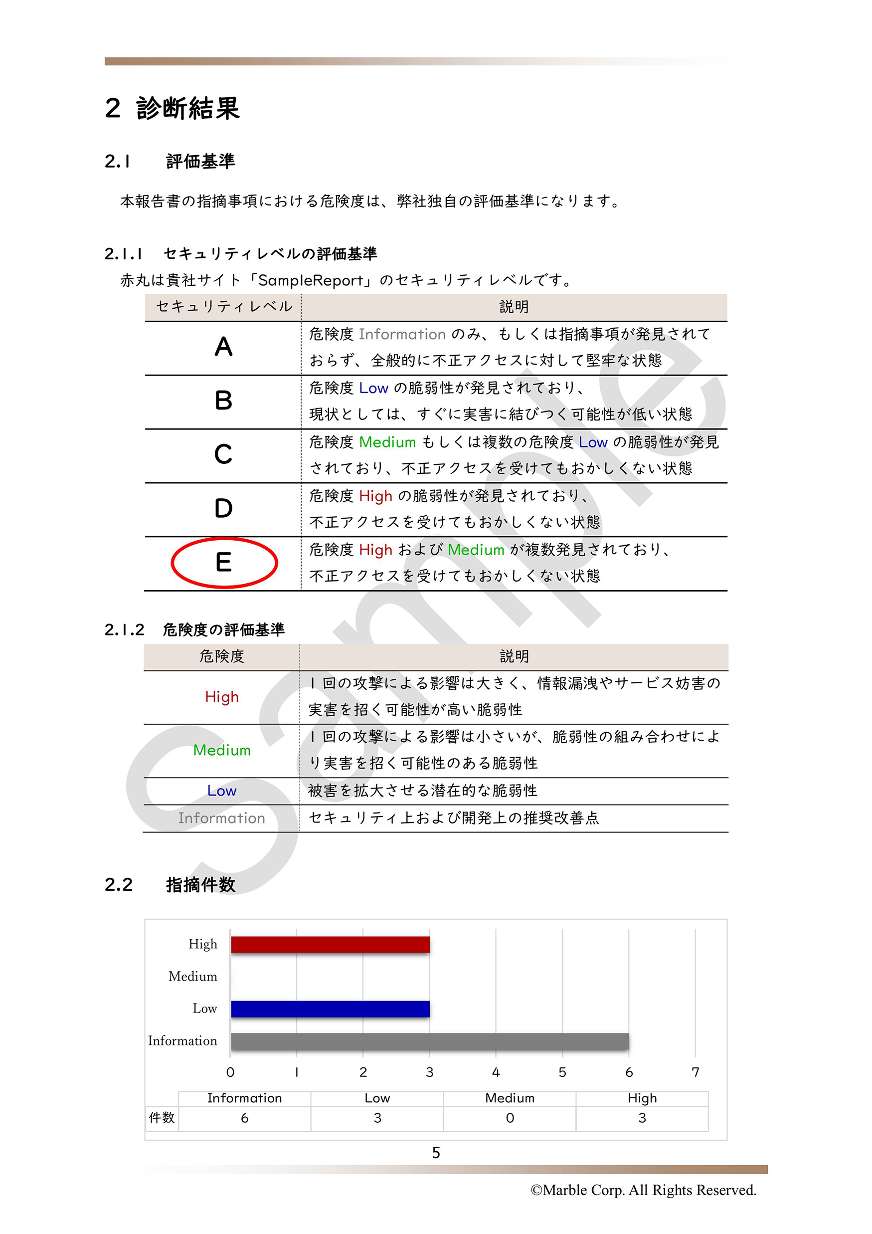 診断実施後の総評や対策指針などを記載・セキュリティレベル